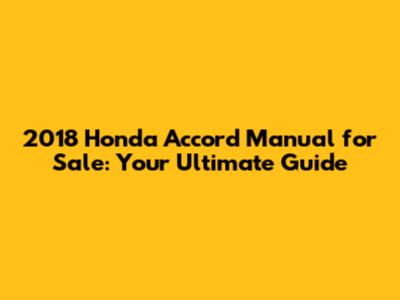 Where to Find a 2018 Honda Accord Manual for Sale