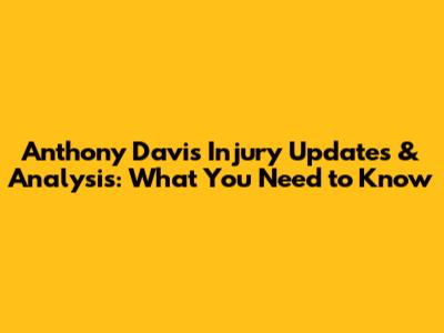 Anthony Davis Injury Updates & Analysis: What You Need To Know