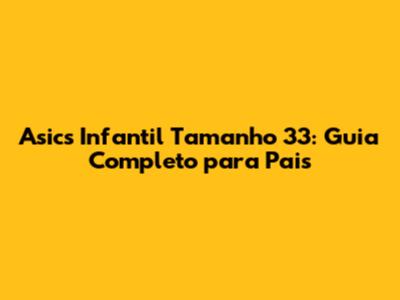 Asics Infantil Tamanho 33: Guia Completo Para Pais