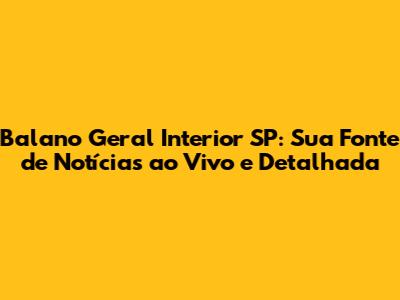 Balano Geral Interior SP: Notícias Ao Vivo E Cobertura Completa