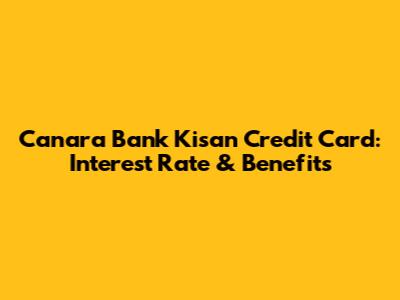 Canara Bank Kisan Credit Card: Interest Rate & Benefits