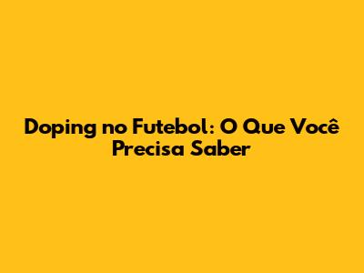 Doping No Futebol: O Que Você Precisa Saber