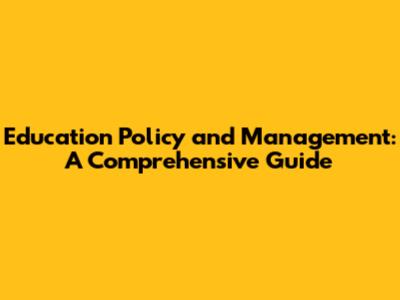 Education Policy And Management: A Comprehensive Guide