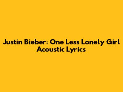 Hey guys! Let's dive deep into one of Justin Bieber's most heartfelt and iconic songs: "One Less Lonely Girl," especially the acoustic version. This song, known for its sweet melody and tender lyrics, really shines in its acoustic rendition, bringing out the raw emotion and vulnerability in both the music and the words. For all the Beliebers out there, or anyone who appreciates a good love song, we're going to explore the lyrics, the acoustic vibe, and why this song continues to resonate with so many people.