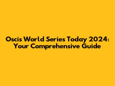 Oscis World Series: Your Ultimate Guide For 2024