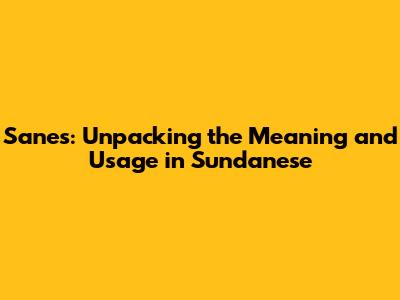Sanes: Sundanese Meaning And Usage Explained