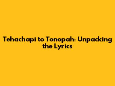 Tehachapi To Tonopah: Unpacking The Lyrics