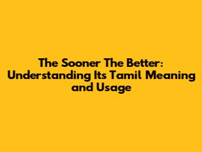 The Sooner The Better: Tamil Meaning & Usage