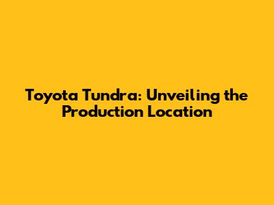 Toyota Tundra: Unveiling The Production Location