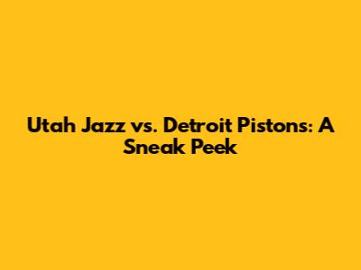 Utah Jazz Vs. Detroit Pistons: A Sneak Peek